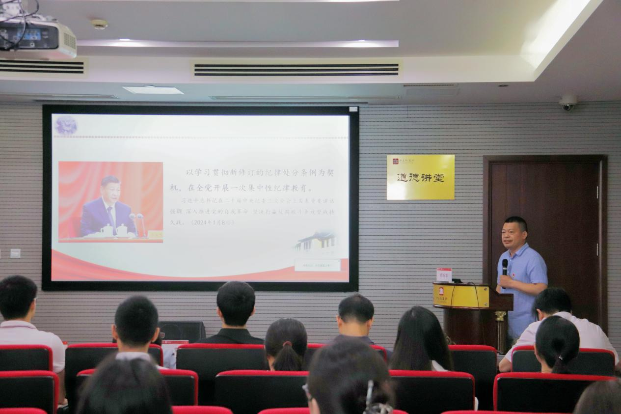 杨振华老师为参与此次活动的党员及中通服有限公司的入党积极分子作了题为《加强党纪建设 保持政党本色》的党纪学习教育专题党课。他从“中国共产党纪律建设的历史”“学习贯彻习近平总书记关于党的纪律建设的重要论述”“站在保持政党本色的高度认识纪律建设”三个方面展开论述。讲述了中国共产党自成立以来,如何不断加强纪律建设,以保持党的先进性和纯洁性。强调了习近平总书记关于党的纪律建设的重要论述对于推动全面从严治党向纵深发展的重要意义,站在保持政党本色的高度认识纪律建设,是确保党始终成为中国特色社会主义事业坚强领导核心的必然要求。大家获益良多,纷纷表示通过这次讲座,更加清晰地认识到了纪律建设对党的重要性和紧迫性。