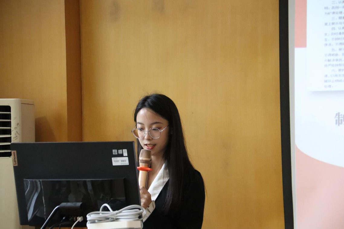 省级优秀班集体21106021班代表金乃馨同学进行了“以行动追逐光影,秉初心奋楫前行”主题的汇报。向在场人员分享了班级在大学期间学习、生活、社会实践等各方面的优秀经验和成果,从立身、立学、立行、立才四个方面展现了班级团结向上、积极进取的精神风貌。