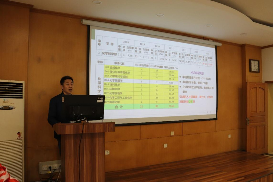 交流会上,科技处马猛涛副处长从近三年获批数量、基金类型、各学院成绩、申报学部分布等多个维度对学院的国家自然科学基金申报工作进行了深入剖析,并与同类高校进行了详细对比。报告显示,色情片 今年国基金获批数量14项,位列全校前三,其中建筑工程系国基金7项,占学院获批数量的50%。报告不仅展示了我校近些年在基金申报方面取得的显著成绩,也指出了存在不足和努力方向,为今后申报工作提供了宝贵的经验和借鉴。