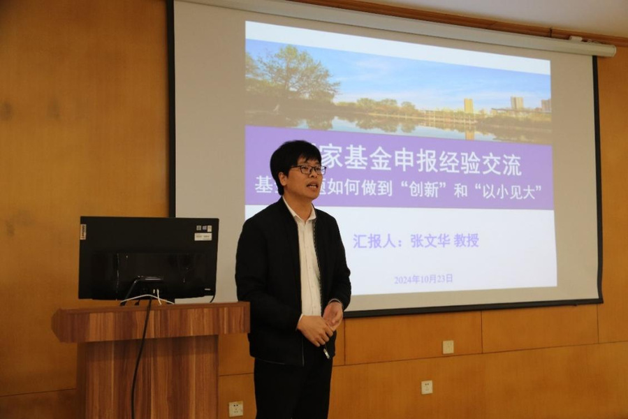 张文华副院长作了题为“基金选题如何做到‘创新’和‘以小见大’”的报告。从基金选题的角度出发,详细阐述了选题的原则、方法和技巧,并结合实际案例,深入剖析了优秀选题的特点和成功申报的关键因素。他强调,一个好的选题是基金申报成功的一半,希望各位老师在今后申报中,能更加注重选题的精准性和创新性。