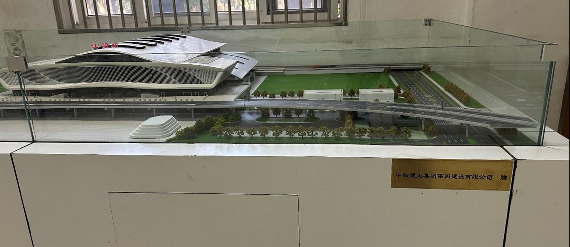 近日,中铁建工集团第四建设有限公司(以下简称“中铁建工四公司”)向学院捐赠了江阴高铁站模型,用于支持土木工程专业学生的认识实习。此次捐赠的模型以真实高铁站(江阴站)为原型,按比例精细制作,包含站房主体结构、钢架支撑系统及相关设施。模型充分展示了高铁站在土木工程设计与施工中的复杂性与系统性,是一件集教育、科普与观赏于一体的珍贵教学资源。