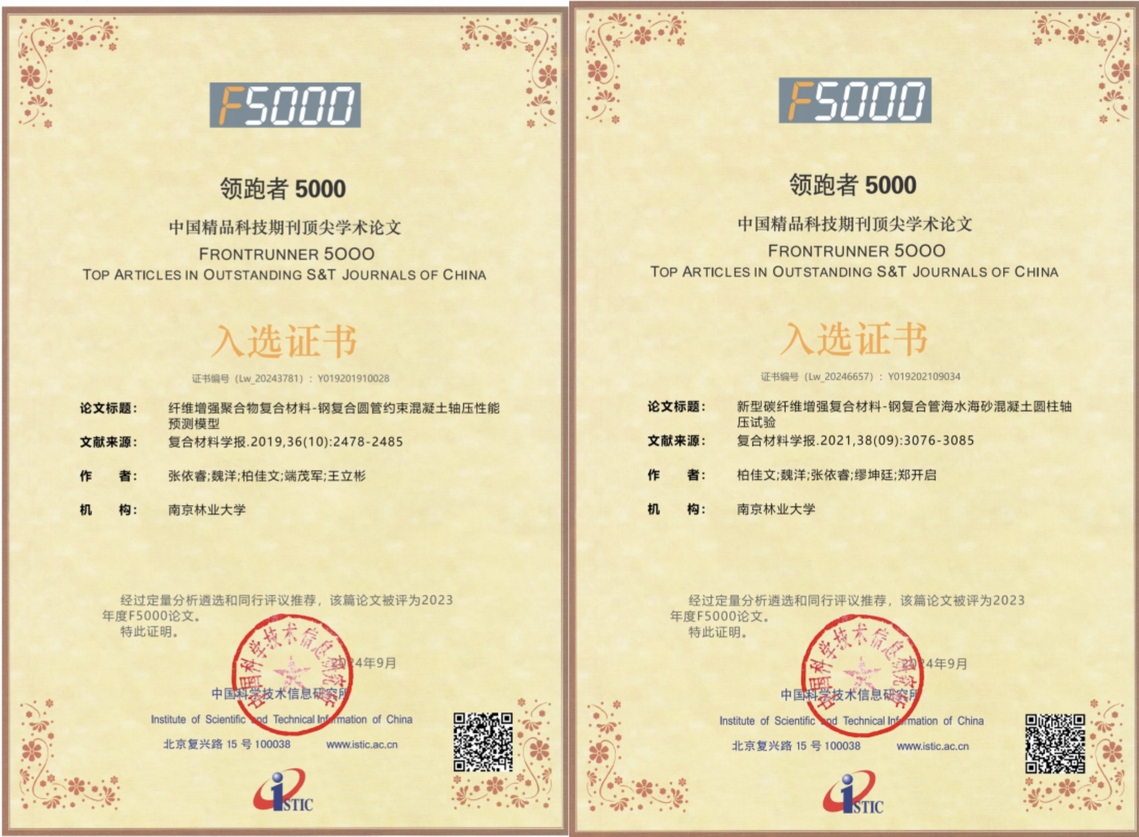 近日,色情片 魏洋教授团队两篇研究论文入选“领跑者5000—中国精品科技期刊顶尖学术论文”。入选论文分别为《纤维增强聚合物复合材料-钢复合圆管约束混凝土轴压性能预测模型》(复合材料学报.2019,36(10):2478-2485)和《新型碳纤维增强复合材料-钢复合管海水海砂混凝土圆柱轴压试验》(复合材料学报.2021,38(09):3076-3085)。