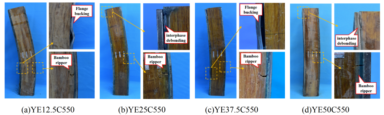 针对钢管约束竹组合柱(BST),课题组开展了一系列钢管约束竹柱的轴压力学性能研究,重点分析了长宽比和钢管厚度对矩形钢管-竹组合柱轴压力学性能和破坏模式的影响,量化了各参数与强度指标之间的关系,基于钢管约束效应,提出了具备高预测精度的矩形钢管-竹组合柱的轴压强度预测模型;针对型钢部分包裹竹组合柱(PEBS),开展了不同偏心距和长细比影响下的偏压力学性能研究,通过试验及理论研究,深入探究了偏心距和长细比对组合柱偏压承载力和变形性能,定量分析了偏心率和长细比对组合柱偏压承载力的影响规律,基于试验结果,提出了型钢部分包裹重组竹组合柱偏压承载力模型,预测效果良好。