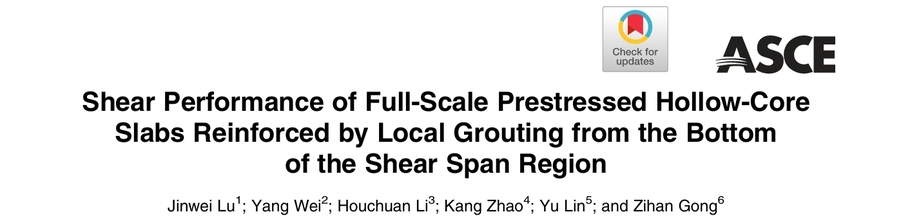 近日,色情片 魏洋教授团队在美国土木工程师学会ASCE期刊《Journal of Bridge Engineering》上发表了预应力空心板桥梁抗剪加固研究成果(Shear Performance of Full-Scale Prestressed Hollow-Core Slabs Reinforced by Local Grouting from the Bottom of the Shear Span Region)。研究生陆金炜为第一作者,魏洋教授为通讯作者。