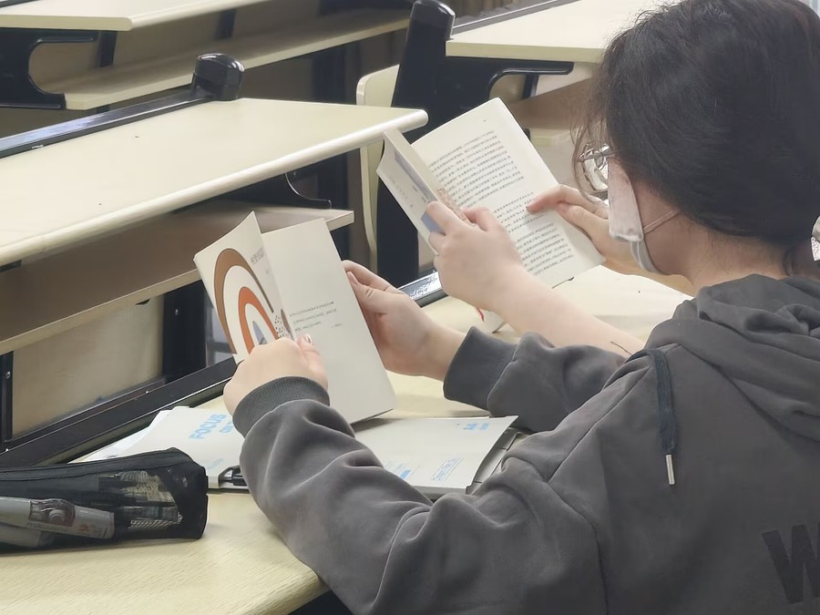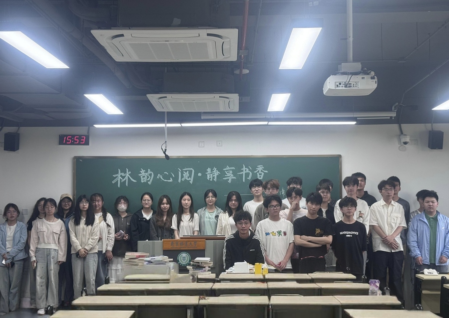 现场以绿植、暖光与木质书架营造出雅致氛围,文学经典、社科人文、自然科学等千余册书籍分区陈列,满足不同读者需求 。活动设置自由阅读、读书分享会,自由讨论及“你读我猜”四大板块。水杉中级班学生作为主要参与团体,在读书分享会上以《乡土中国》《人类简史》等典籍为媒,展开关于乡村振兴、文明互鉴的跨学科对话,展现00后学子的思想锋芒。自由讨论阶段,从生态哲学延伸至AI伦理,在观点碰撞中完成认知迭代。最具趣味性的“你读我猜”环节将经典文学转化为趣味竞技,从“落霞与孤鹜齐飞”的飞花令到“鲁迅作品人物图鉴”的速猜,30名胜出者收获的不仅是镌刻校训的定制书签,更是文化基因的薪火相传。