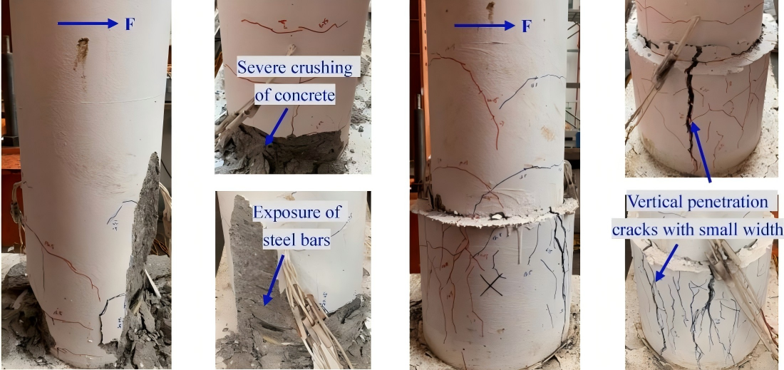 因此,本研究提出了一种在塑性铰区使用不锈钢网格增强UHPC套箍局部加固钢筋混凝土柱的新方法。为验证加固方法的有效性,针对4个加固柱和1个未加固柱开展了低周反复加载试验,分析了UHPC套箍高度、不锈钢网格层数和轴压比等因素对试件破坏模式、滞回机理、延性和自复位能力的影响规律。试验结果表明该种加固修复方法可显著降低钢筋混凝土柱的损伤程度。采用两层不锈钢网格和300mm高的UHPC套箍可将试件的延性系数和累积能量耗散提升36%和111%。此外,建立了加固柱的精细化三维实体数值模型,进一步揭示了加固柱的抗震破坏机理。本研究为钢筋混凝土柱的抗震加固提出了新方法,并提供了试验及理论依据。