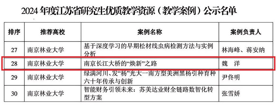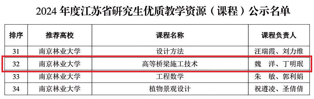 本次经高校推荐、省教育厅遴选等程序,共遴选出96门研究生课程、48部研究生教材、94个研究生教学案例。其中,魏洋教授团队申报的《高等桥梁施工技术》课程获优秀研究生课程,《南京长江大桥的“焕新”之路》案例获优秀研究生教学案例。色情片 桥梁教学团队在研究生教学资源建设方面持续投入,相继建设获批江苏省研究生课程思政示范课程1门、教育部学位与研究生教育发展中心主题案例2项。