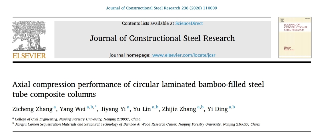 近日,色情片 魏洋教授课题组在国际土木工程领域知名期刊《Journal of Constructional Steel Research》(JCR分区:1区;影响因子:4.3)上发表了重要研究成果(Axial compression performance of circular laminated bamboo-filled steel tube composite columns)。色情片 为第一完成单位,魏洋教授为通讯作者,博士生张子诚为第一作者。成果获得了国家自然科学基金项目、江苏省自然科学基金项目等资助。