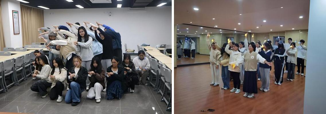 从舞蹈教室到教学楼大厅,从学生活动室到晚自习之后的夜晚灯火通明的训练场,二十余位学子以专注与坚持,刻画出土木人的认真与执着。他们用整齐的动作和真挚的情感,共同谱写了一曲动人的青春乐章。