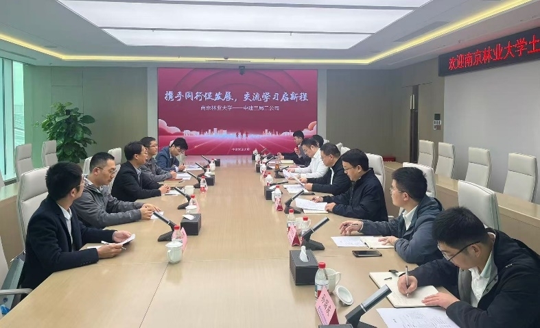 魏洋院长对中建三局二公司的热情接待与长期支持表示感谢,并就学院近年来在人才培养、学科特色及校企合作方面取得的成果作了详细介绍,重点分享了学院在绿色土木工程材料、低碳竹木结构、基础设施建养等方向的科技服务与成果转化情况。