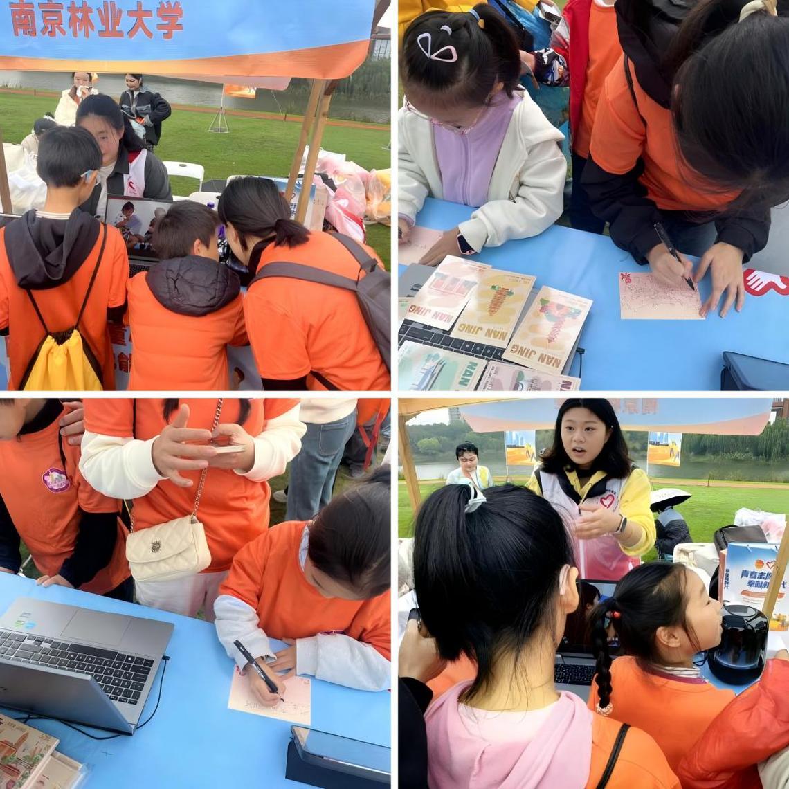 在现场,志愿者们通过多元化的形式与前来参与活动的青少年、家长及各界人士互动。易拉宝上图文并茂地展示了项目在困境儿童艺术教育与心理赋能方面的实践成果。团队还带来了在第七届江苏省大学生艺术展演中荣获特等奖的微电影《走进讨火车村的莎士比亚》,循环播放于现场,为观众呈现了项目在乡村戏剧教育中的感人故事。通过大学生志愿者地生动讲述,将乡村孩子们对艺术的热爱与成长的蜕变传递给每一位参与者。