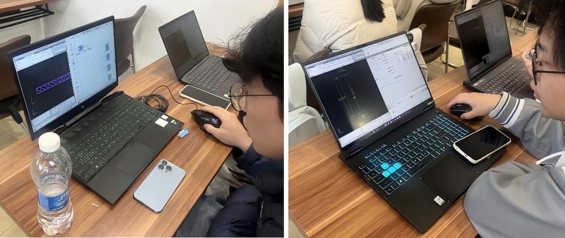 陆佳慧工程师以“可视化编程基础——用代码和算法拓宽土木工程边界”为题,首先介绍了可视化编程发展历程以及ComfyUI,Rhino Grasshopper等常用的可视化编程软件,并比较了C#、C和Python三种编程语言的特点;随后对Y-GAMA软件的安装、界面操作及建模过程进行实操讲解,展示了可视化编程及动态调整建模案例,包括参数化建模桁架结构、单筋梁混凝土截面优选设计、钢梁截面优选设计、现浇钢筋混凝土肋梁楼盖设计及优化以及高层剪力墙智能设计等。通过一个个生动形象的案例,同学们对可视化编程、参数化设计、算法优化在智能建造领域的应用有了更深的理解,为后期毕业设计打下了一定的智能软件应用基础。