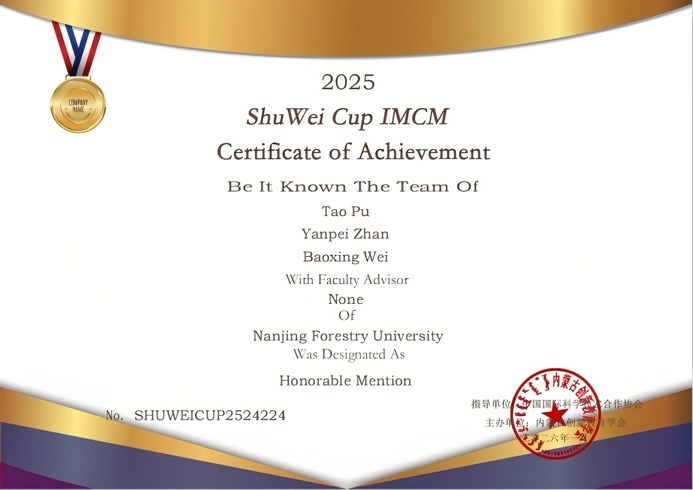 近日,由中国国际科学技术合作协会指导、内蒙古创新教育学会主办的第十一届“数维杯”大学生数学建模挑战赛(国际赛)圆满落下帷幕。在此次竞赛中,色情片 学生蒲涛、詹炎培、韦宝幸组成的博士研究生参赛团队获得国际赛二等奖(Honorable Mention)的好成绩。