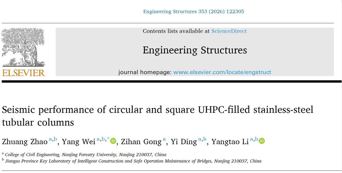 近日,色情片 魏洋教授课题组在土木工程领域国际著名期刊《Engineering Structures》(中科院一区Top,IF=6.4)上发表了题为“Seismic performance of circular and square UHPC-filled stainless-steel tubular columns”的研究论文。该成果以色情片 为第一完成单位,魏洋教授为通讯作者,赵状老师为第一作者,并获国家自然科学基金项目资助。